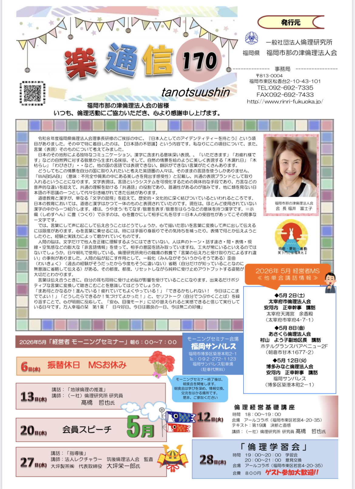 福岡市東倫理法人会 会報誌「東のわ」2026.5月New!!