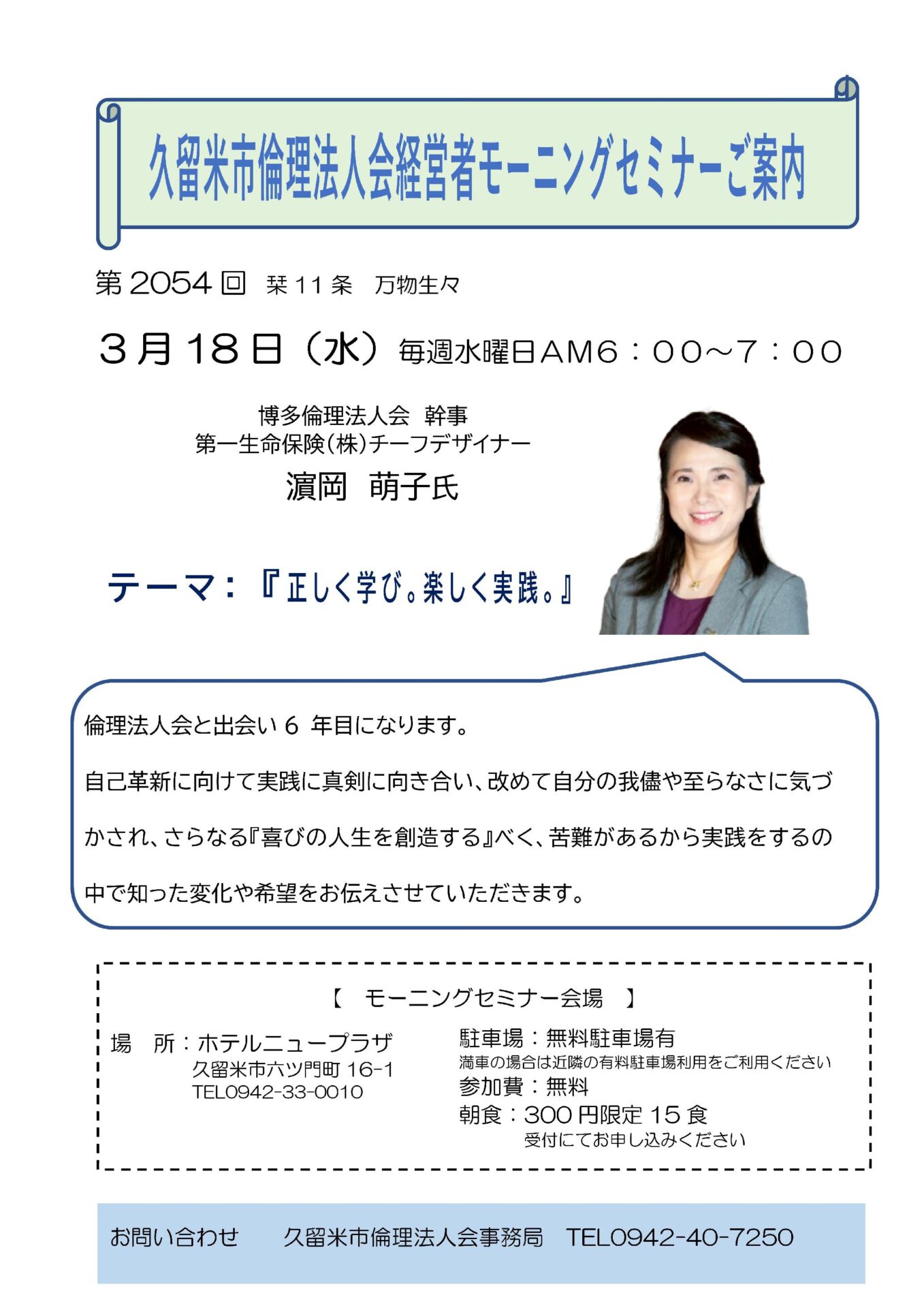 第2054回 博多倫理法人会 幹事 濵岡 萌子氏
