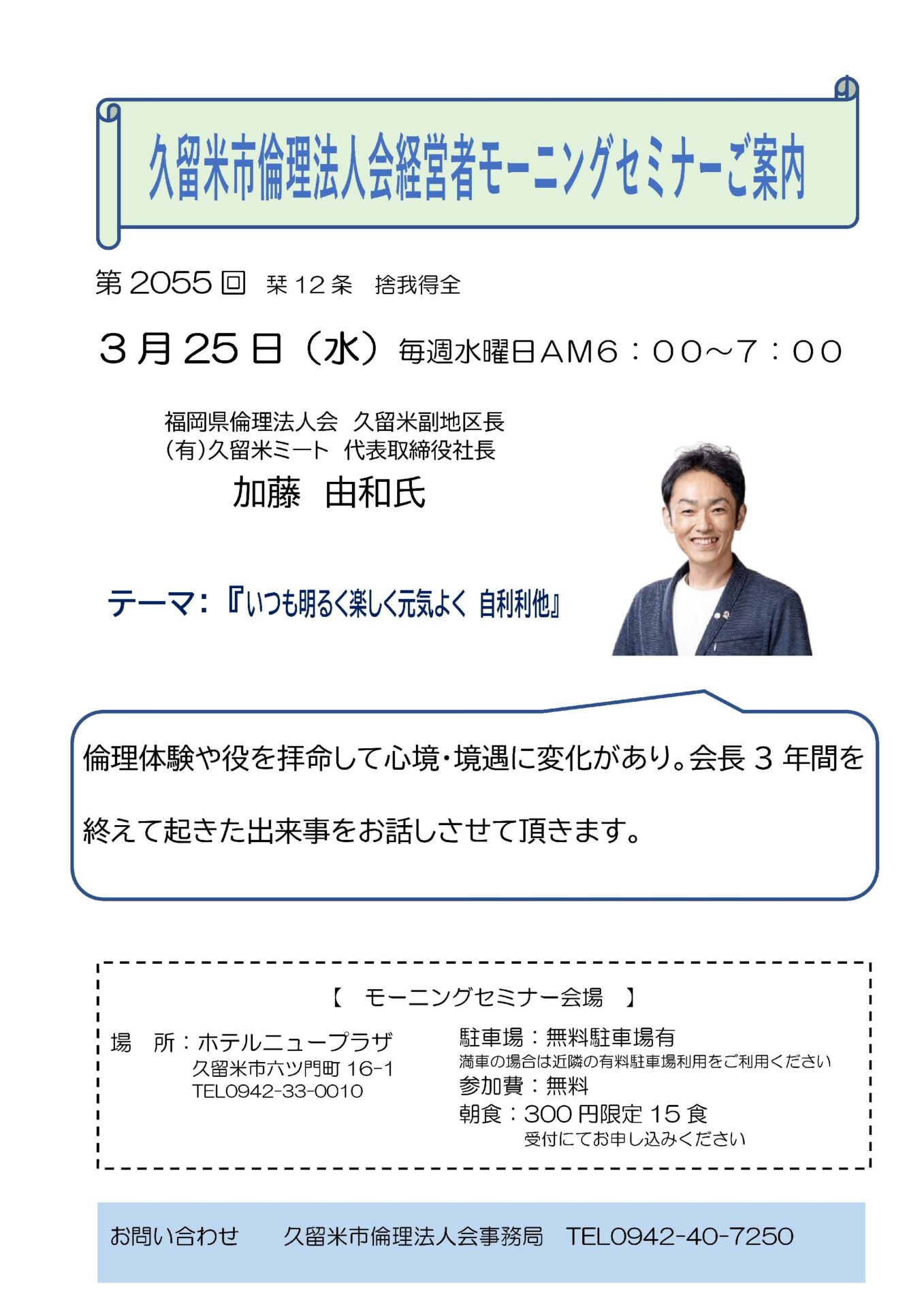 第2055回 福岡県倫理法人会 久留米副地区長 加藤 由和氏