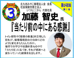 第698回「当たり前の中にある感謝」北九州みやこ倫理法人会加藤智史会長