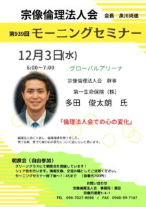 第939回栞1条「倫理法人会での心の変化」宗像倫理法人会 幹事 多田俊太朗氏