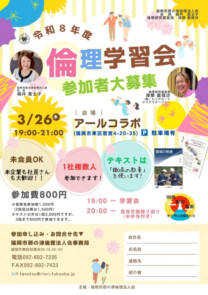 福岡市那の津倫理法人会 「倫理学習会」2026.3.26(木)開催