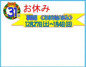年末年始のためお休みです