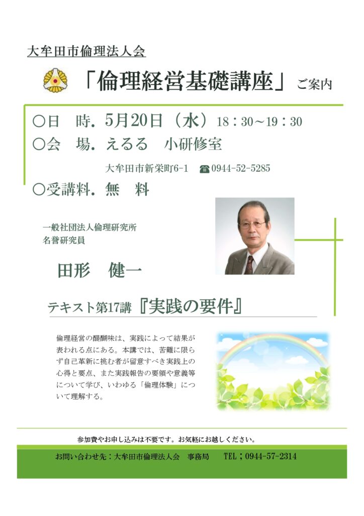 倫理法人会は一般社団法人倫理研究所の法人会員によって組織された会です。倫理経営の実践と普及を目的とし、企業経営者を対象に「経営者モーニングセミナー」等を開催しております。