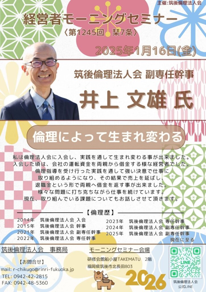 第1245回 経営者モーニングセミナー 筑後倫理法人会 井上文雄 副専任幹事「倫理によって生まれ変わる」