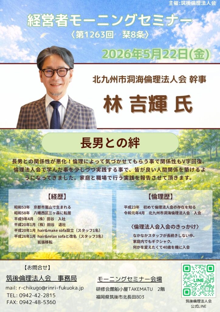 第1263回 経営者モーニングセミナー 北九州市洞海倫理法人会 幹事 林吉輝 氏 「長男との絆」
