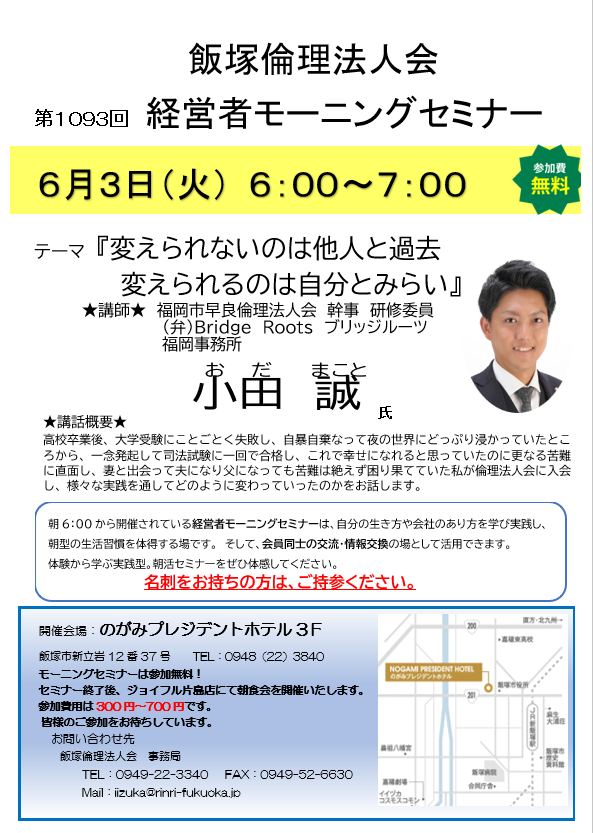 飯塚倫理法人会|経営者モーニングセミナー
