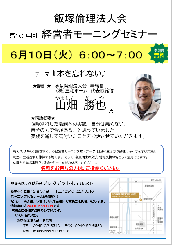 飯塚倫理法人会|経営者モーニングセミナー