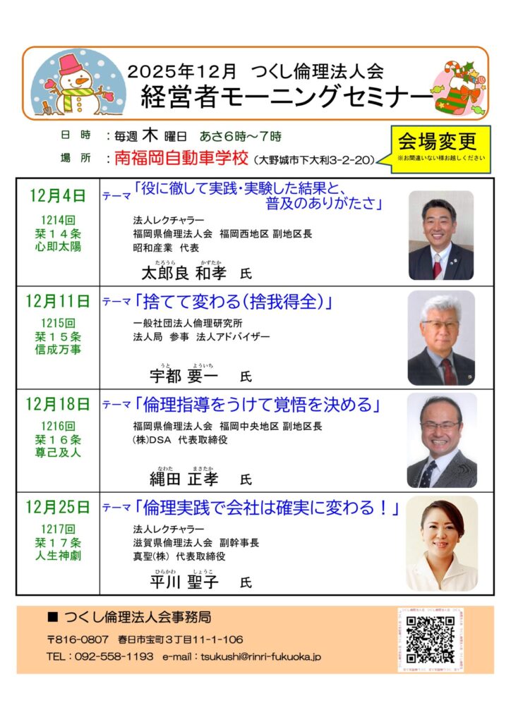 第1216回「倫理指導をうけて覚悟を決める」福岡県倫理法人会 福岡中央地区 副地区長 縄田正孝 氏