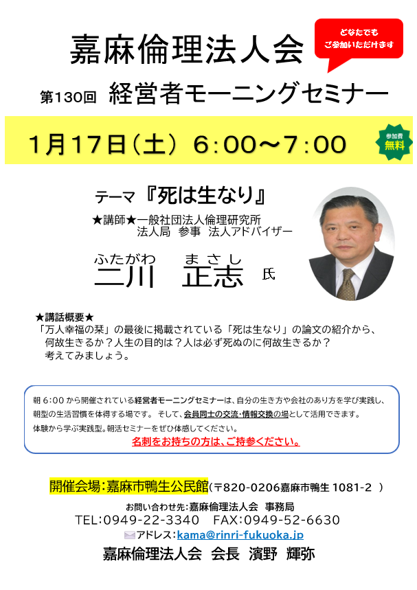 第130回 『死は生なり』 法人アドバイザー 二川 正志 氏