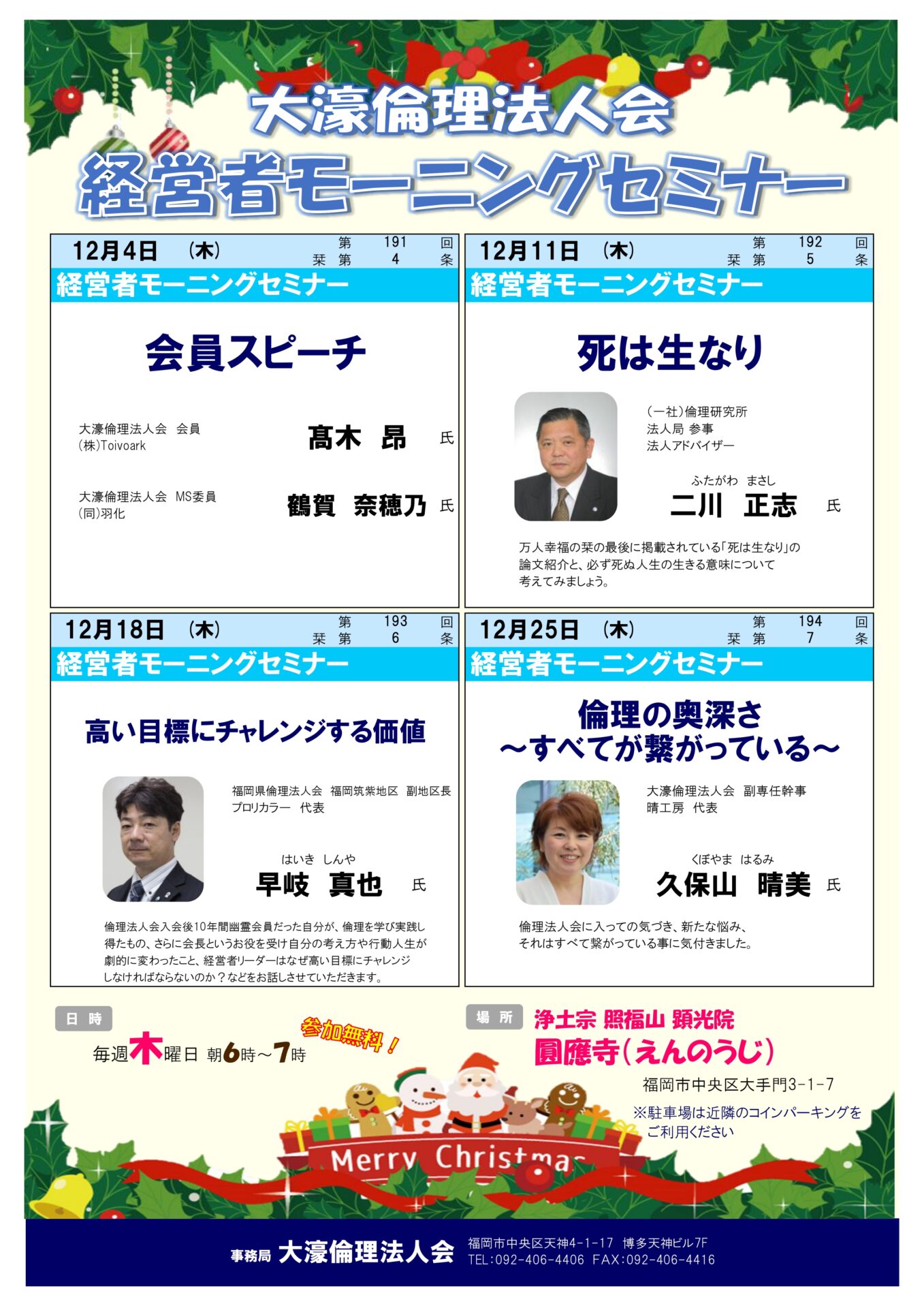 第193回「高い目標にチャレンジする価値」福岡県倫理法人会 福岡筑紫地区 副地区長 早岐 真也氏