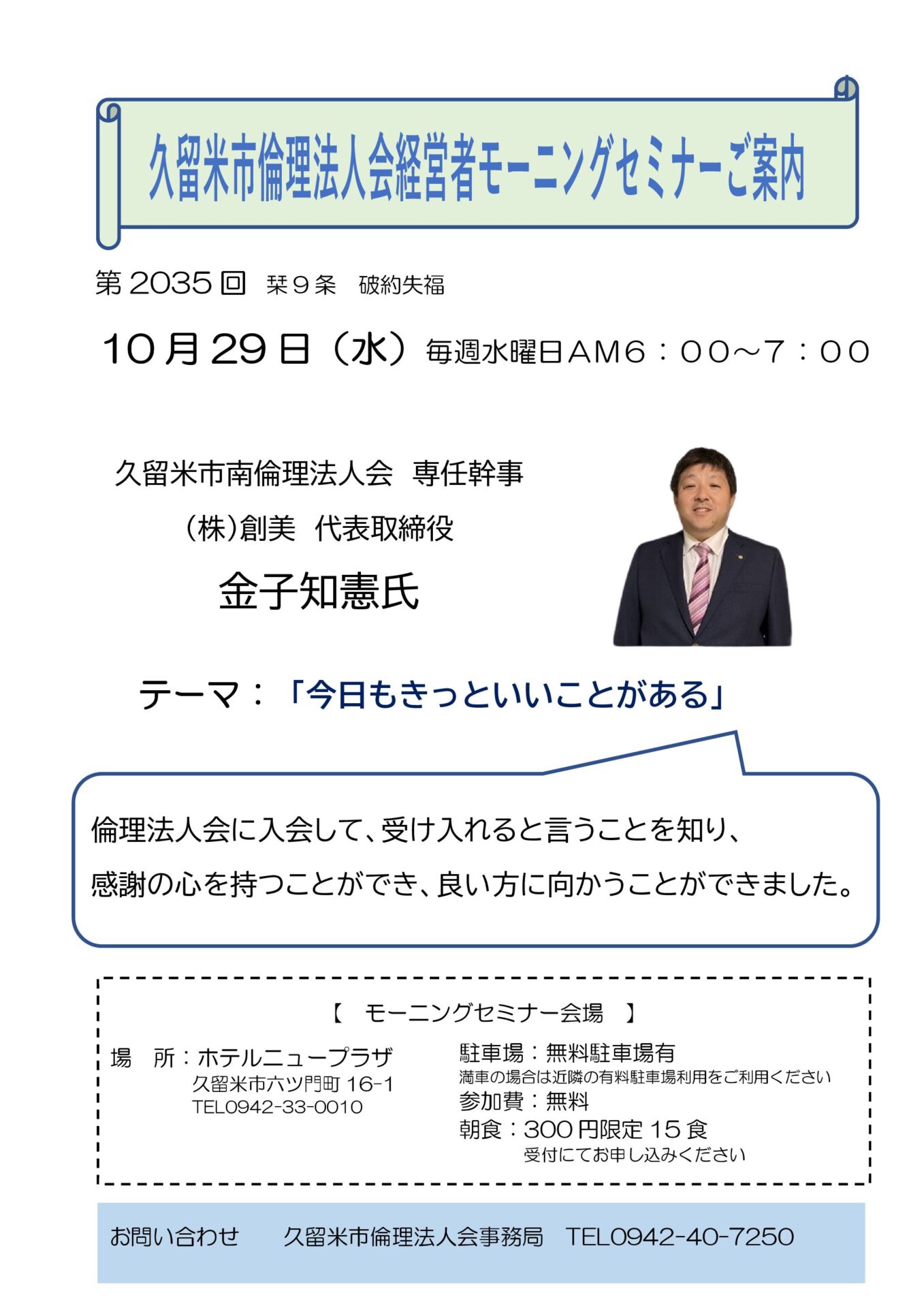 第2035回 久留米市南倫理法人会 専任幹事  金子知憲氏