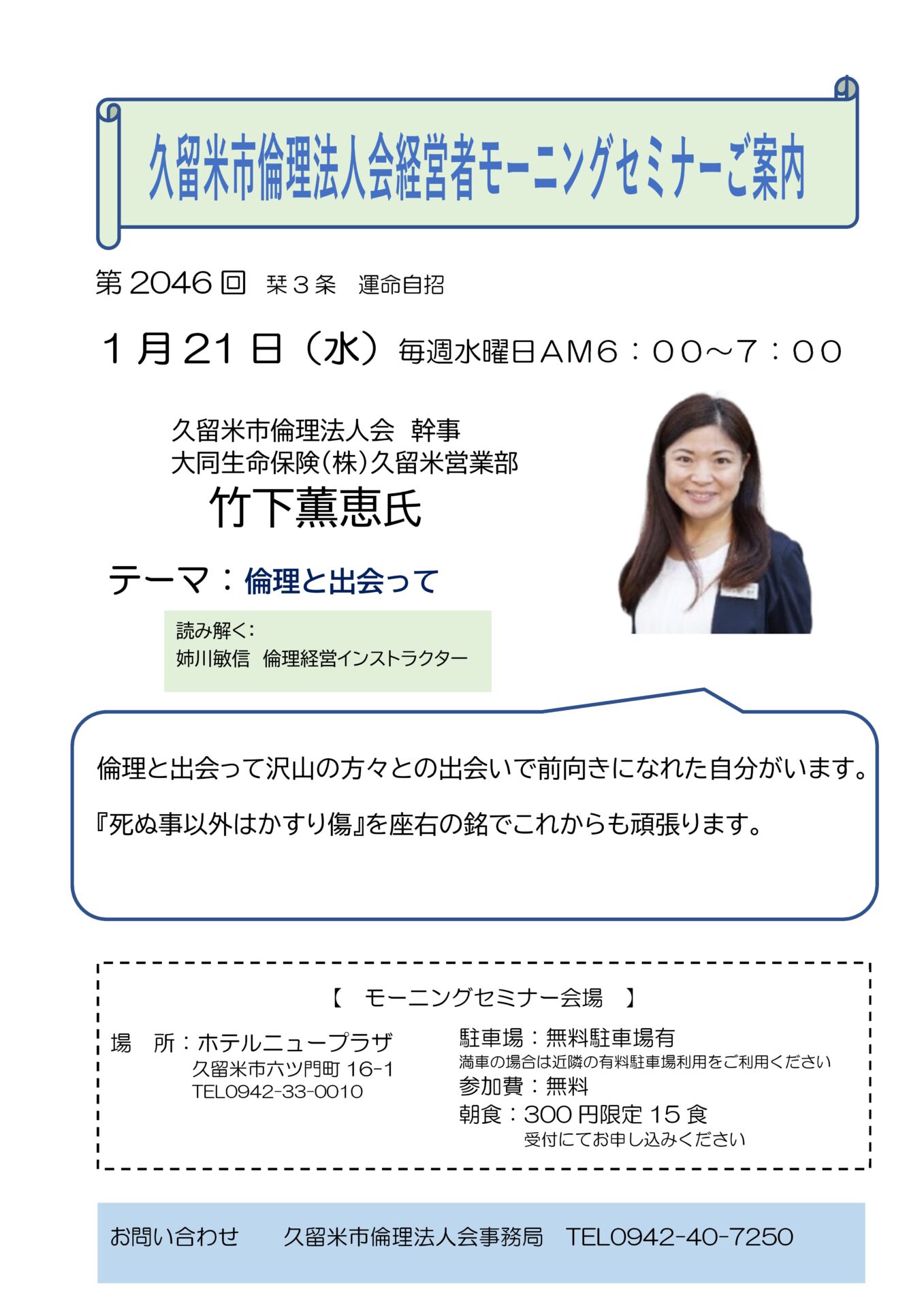 久留米市倫理法人会 幹事 大同生命保険(株)久留米営業部 竹下薫恵氏