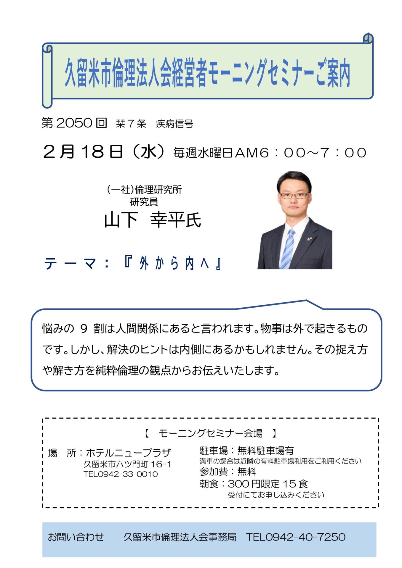 第2050回 (一社)倫理研究所 研究員 山下 幸平氏