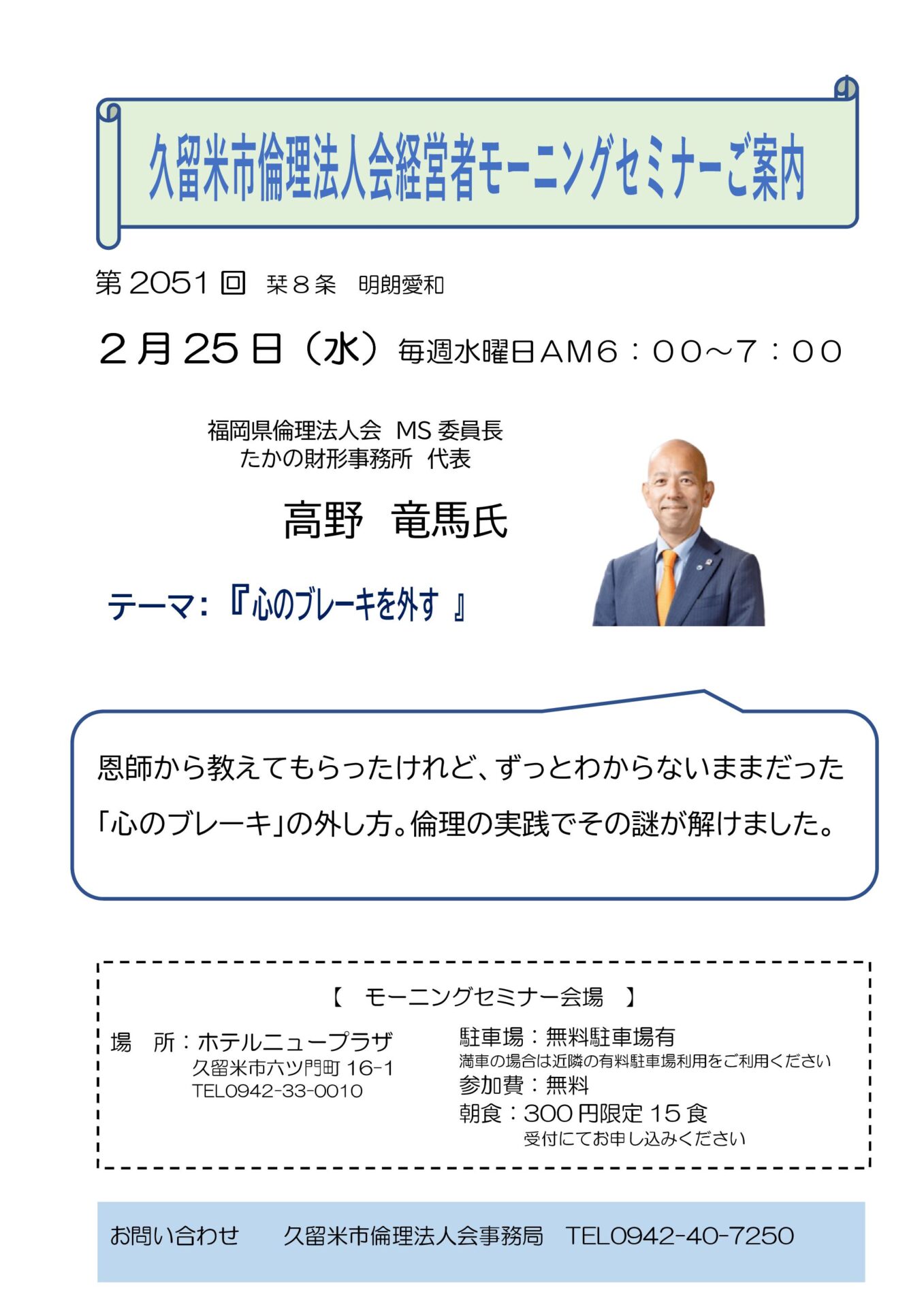 第2051回 福岡県倫理法人会 MS委員長 髙野 竜馬氏