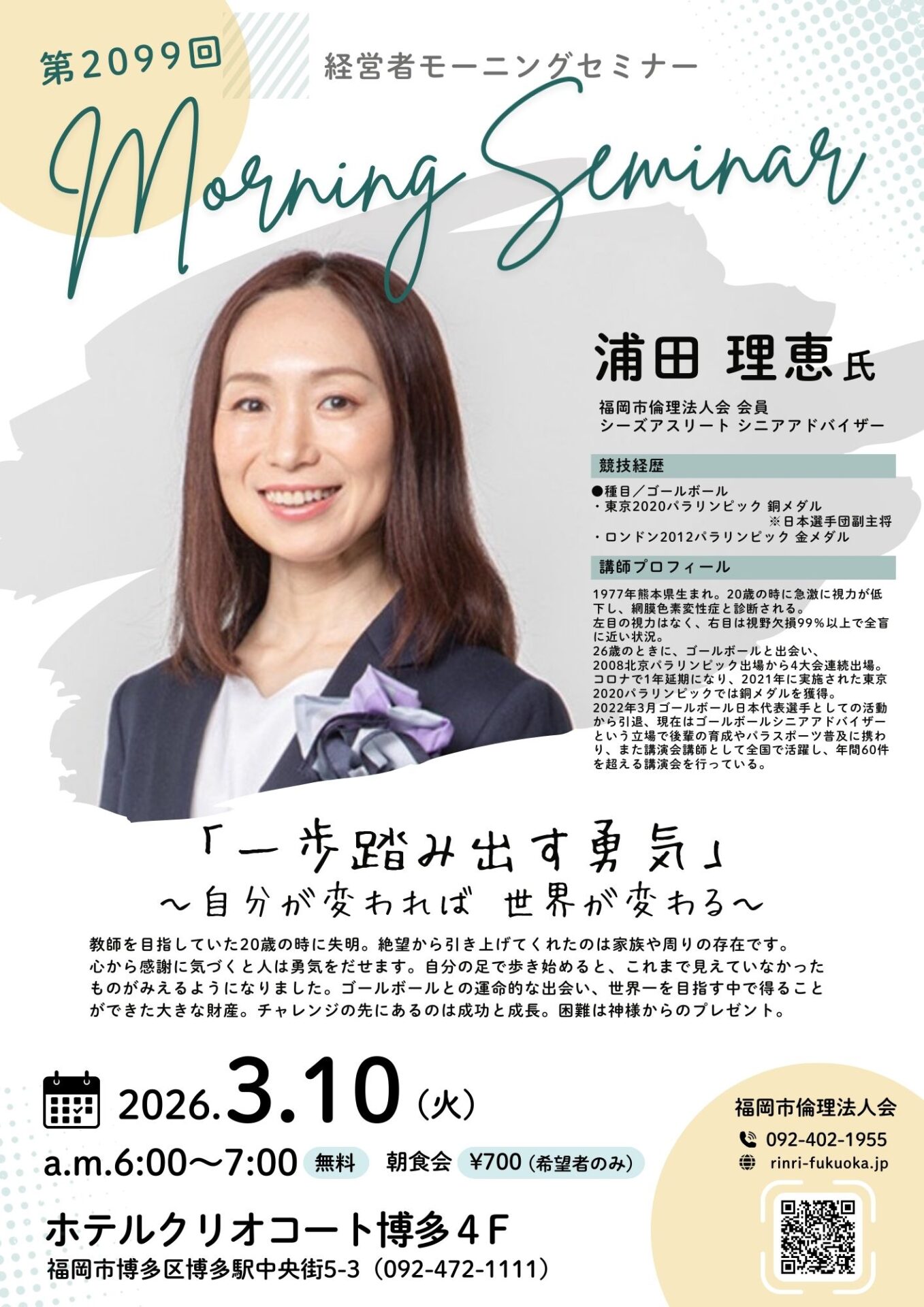 第2099回 浦田 理恵 氏『一歩踏み出す勇気~自分が変われば世界が変わる~』