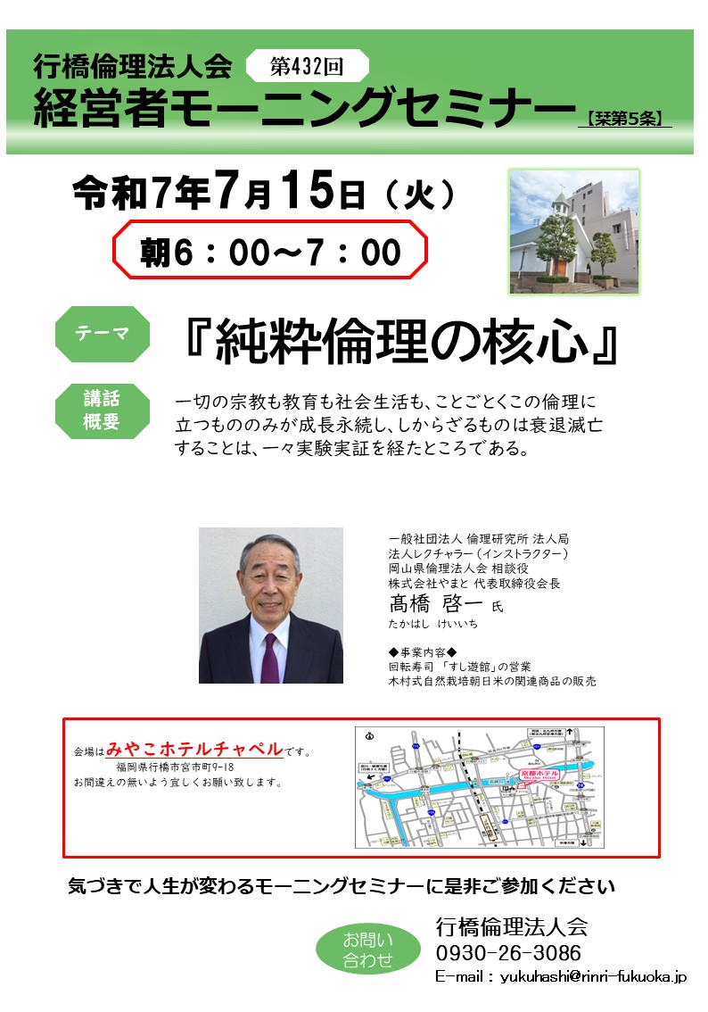 第432回「純粋倫理の核心」法人レクチャラー(イ)髙橋 啓一氏