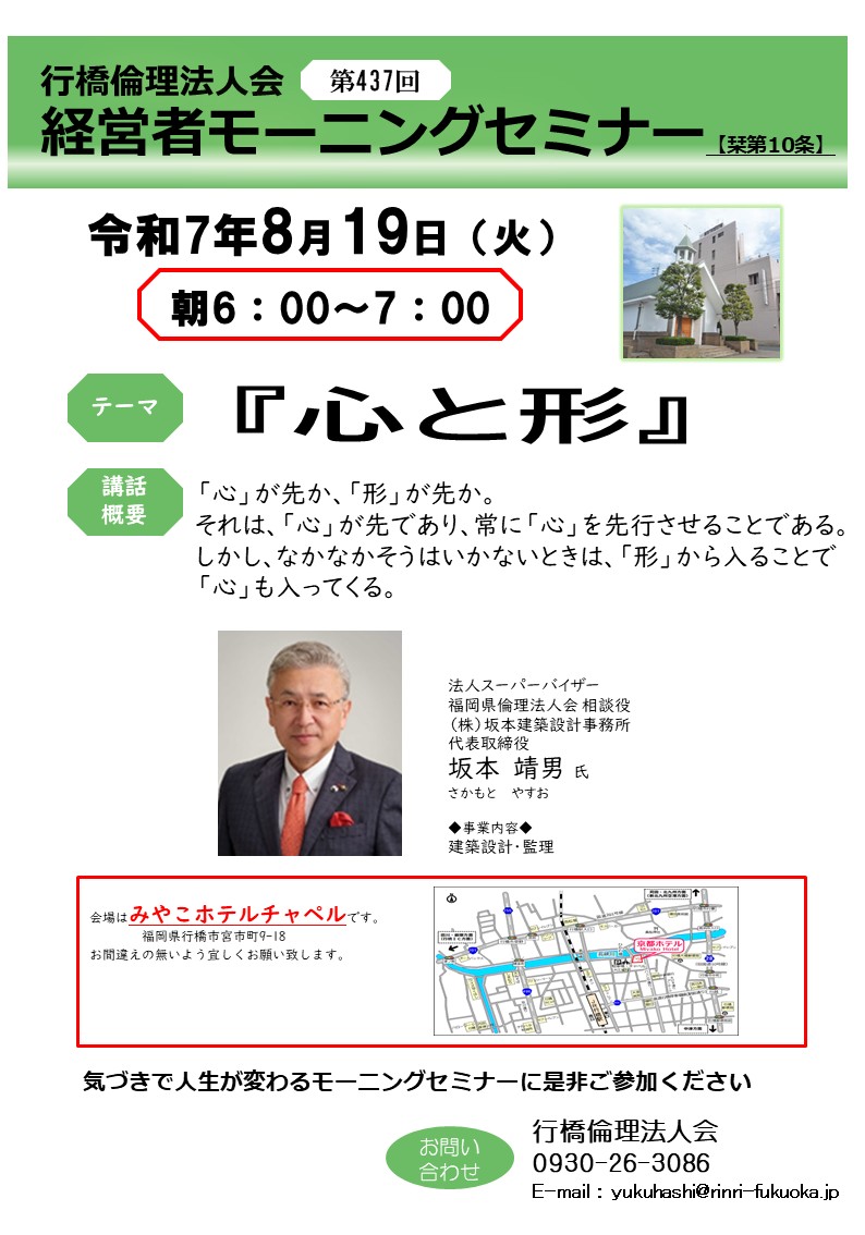 第437回「心と形」福岡県倫理法人会 相談役 坂本 靖男 氏