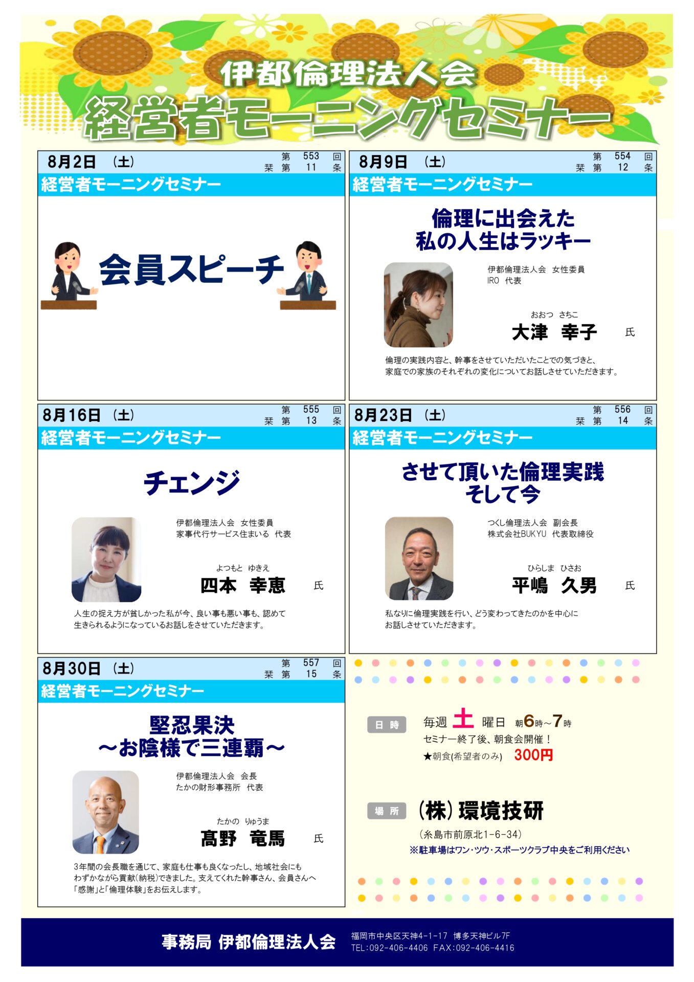 第557回 「堅忍果決」伊都倫理法人会 会長 髙野 竜馬 氏
