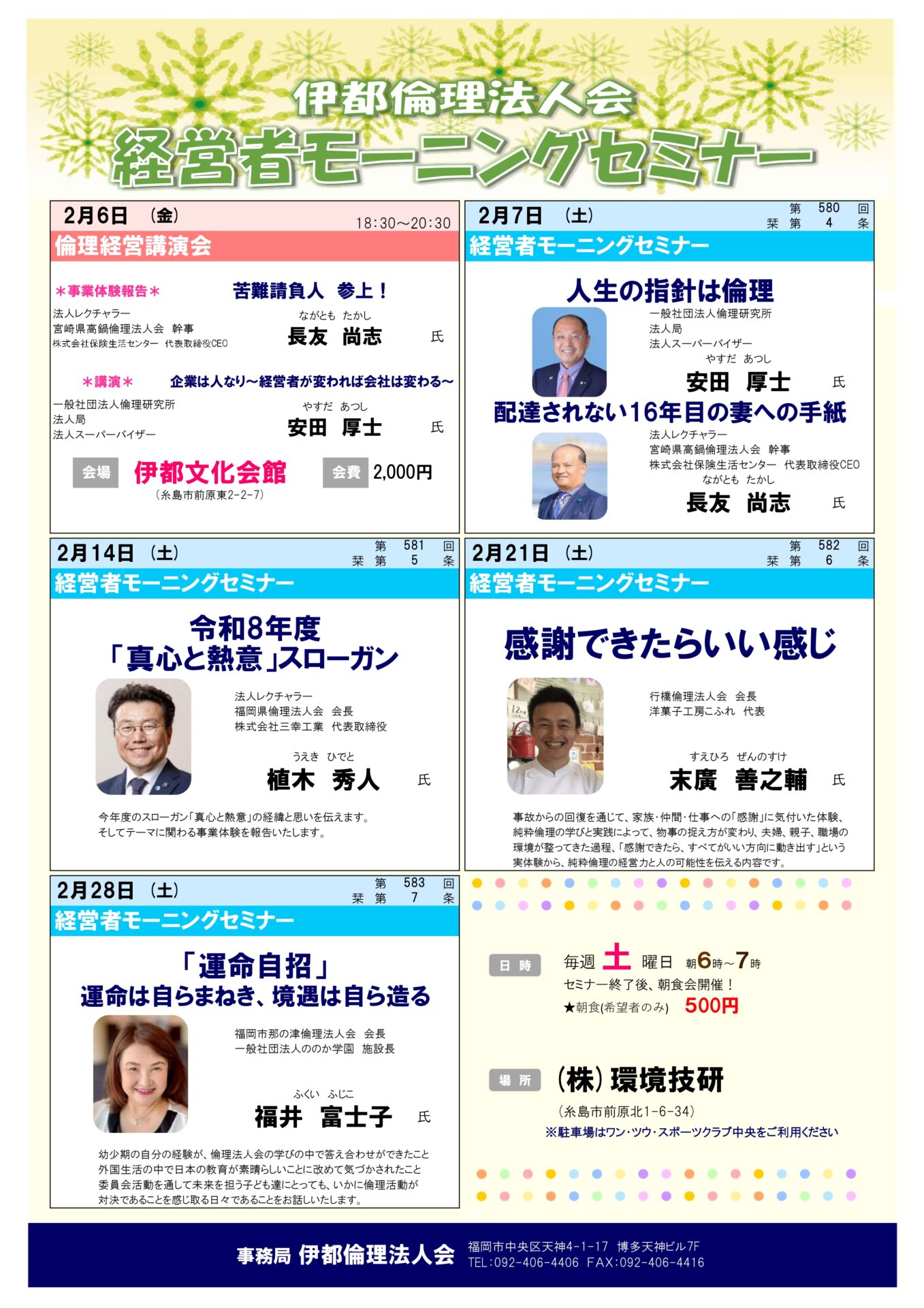 第583回 「運命自招 運命は自ら招き、境遇は自ら造る」福岡市那の津倫理法人会 会長 福井 富士子氏