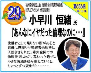 第656回「あんなにイヤだった倫理だったのに・・・」福岡県倫理法人会後継者倫理塾小早川恒緒運営委員長
