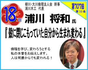 第707回「殻に閉じこもっていた自分から生まれ変わる」柳川大川倫理法人会浦川将和幹事