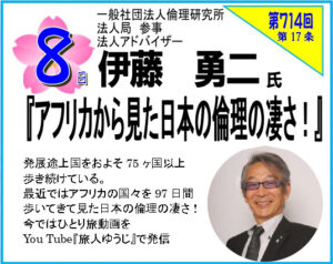 第714回「アフリカから見た日本の倫理の凄さ!」一般社団法人倫理研究所伊藤勇二法人アドバイザー