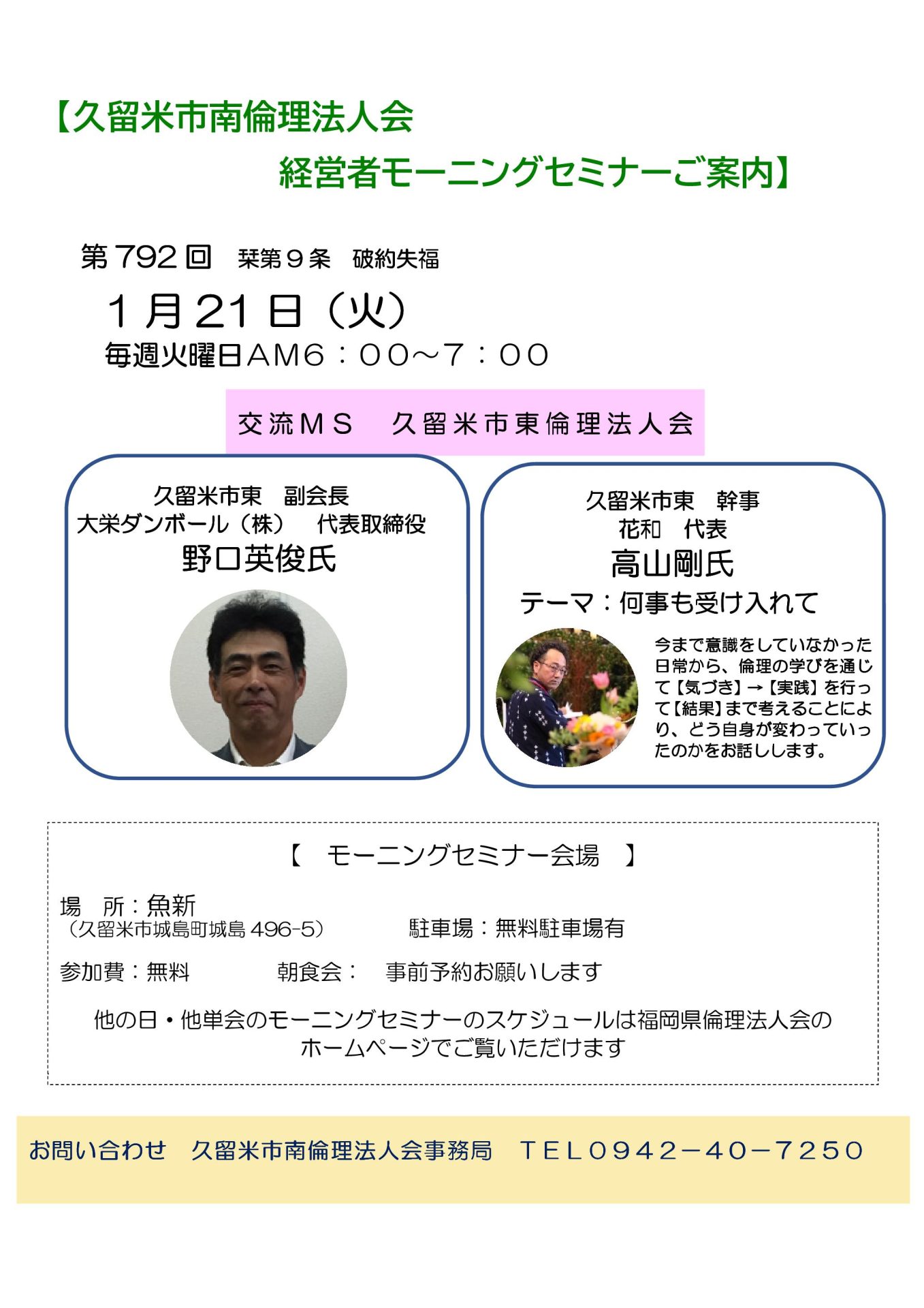 第792回 交流MS 久留米市東倫理法人会 より 野口英俊氏・高山剛氏