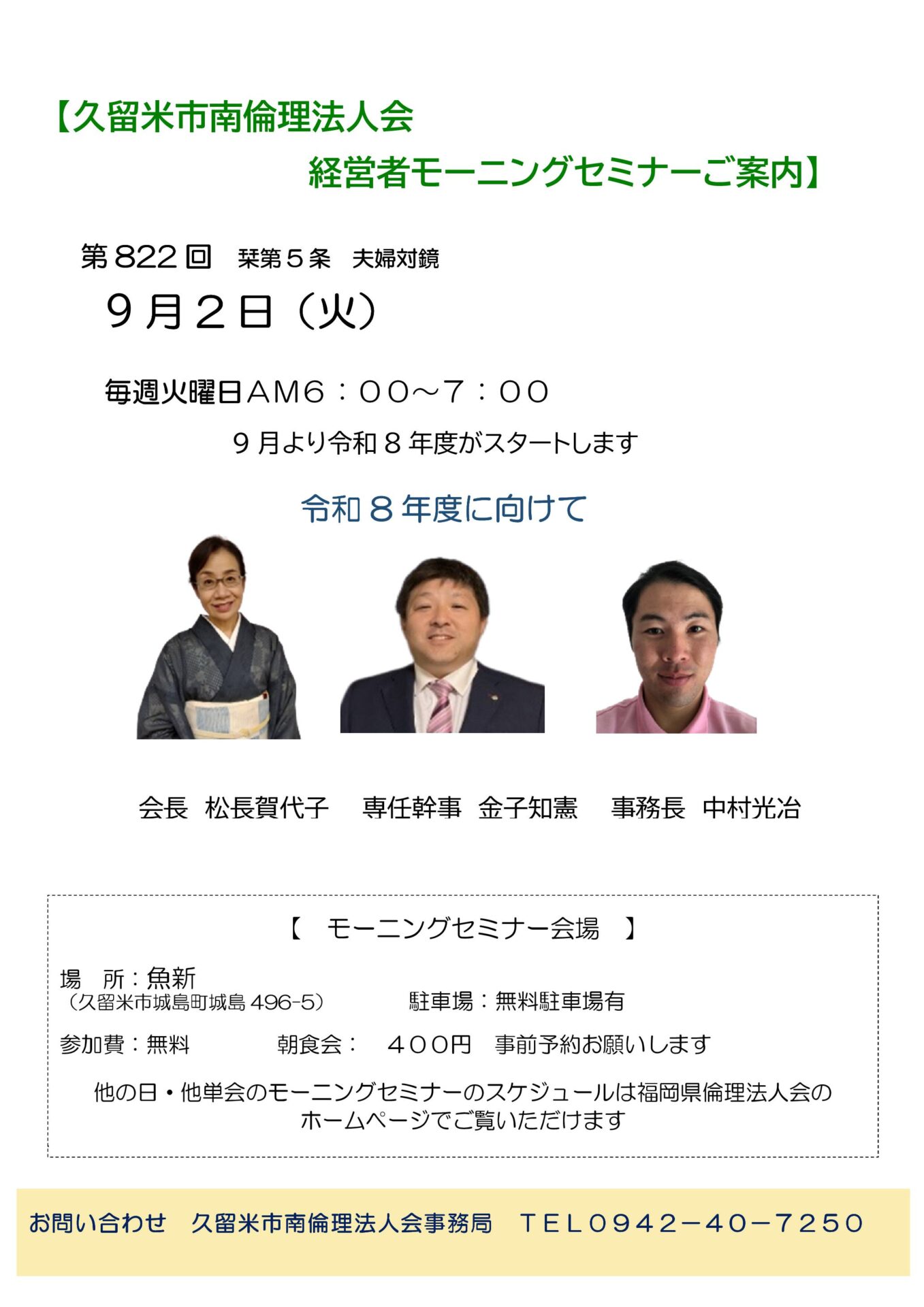 第822回 久留米市南倫理法人会 三役 スピーチ