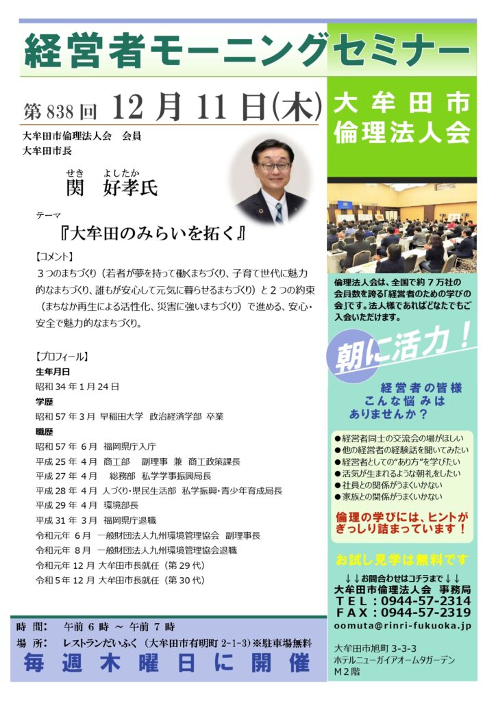 第838回「大牟田のみらいを拓く」大牟田市倫理法人会 会員 関好孝大牟田市長