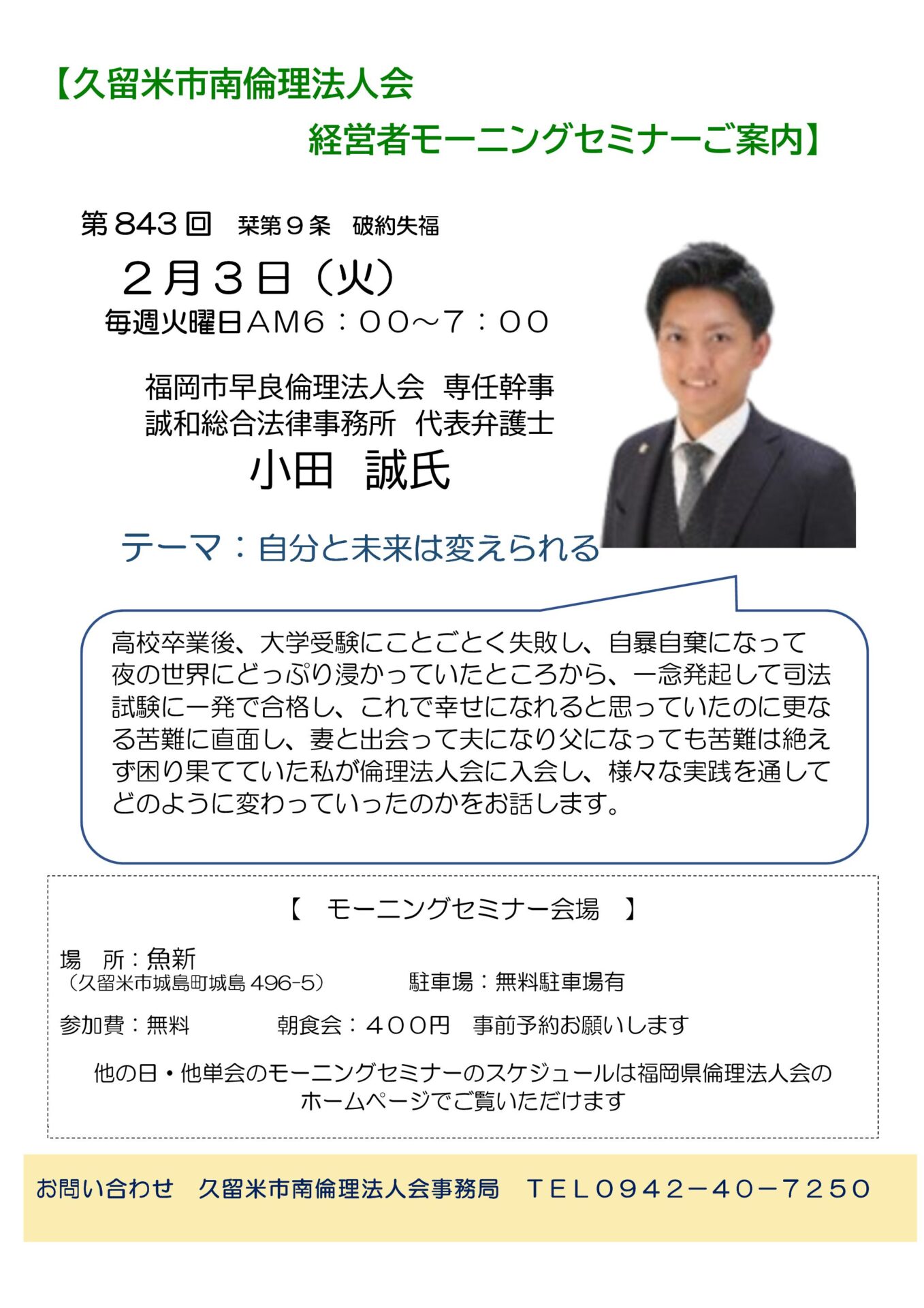 第843回 福岡市早良倫理法人会 専任幹事 小田誠氏