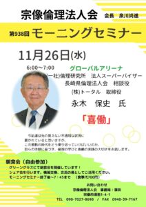 第938回 栞17条「喜働」(一社)倫理研究所 法人スーパーバイザー 永木保史氏